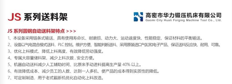 | JS系列圓鋼自動(dòng)送料架特點(diǎn) |